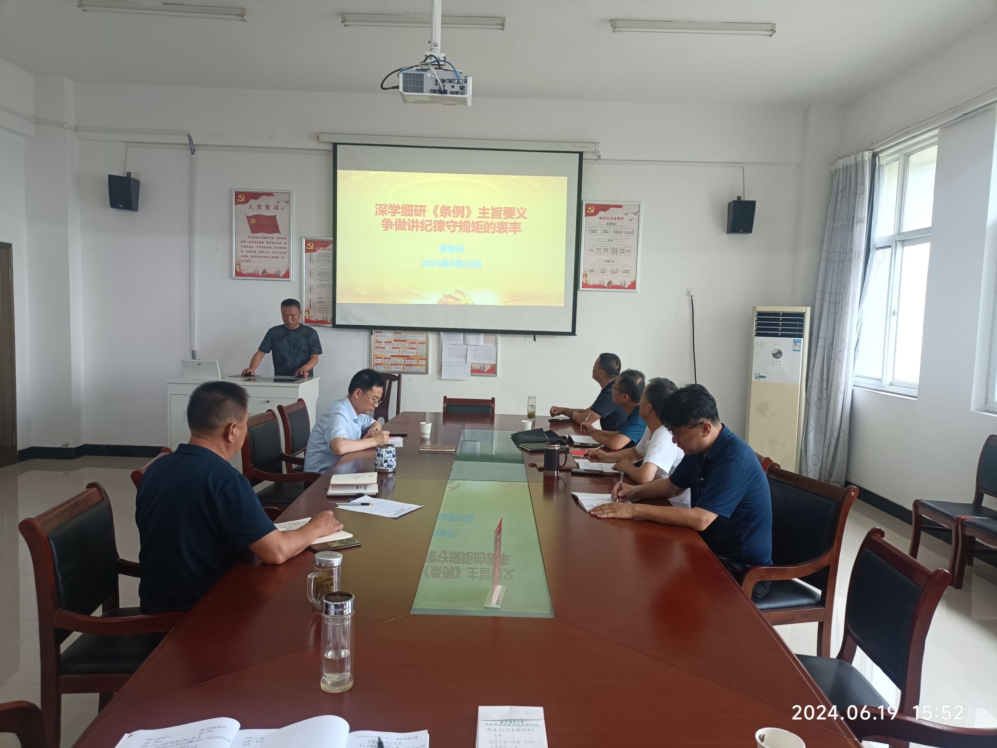 6月19日下午,农业园党支部开展党纪学习教育暨专题纪律党课。会议由支部书记李东升主持,全体在职职工党员参加本次会议。
